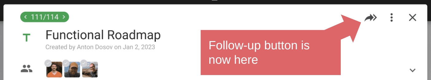 Follow-up button moved to the top